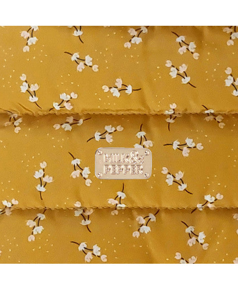 Diese hochwertige Wende-Daunenjacke für kleine und mittelgroße Hunde von Milk & Pepper vereint Stil, Funktionalität und Komfort in einem. Die eine Seite besteht aus wasserabweisendem, gesteppstem Polyester mit einem modischen Senfblumen-Print, die andere aus elegantem Navy-Blau – perfekt, um den Look deines Hundes im Handumdrehen zu verändern.